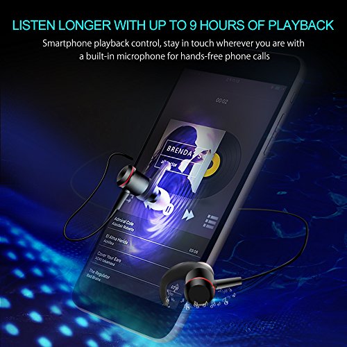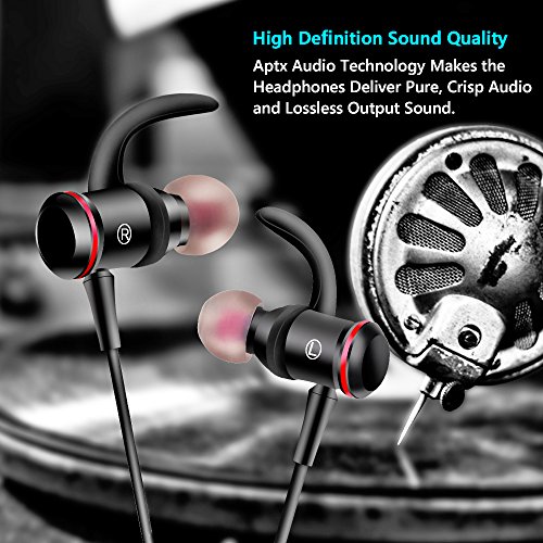 Schones Metallisches Design & Spritzwassergeschutzt: Nehmen Sie Ihre Musik uberall mit hin. Wenn Sie die Bluetooth-Kopfhorer nicht mehr benutzen, konnen Sie sie mit durch die Magnetfunktion der Ohrhorer verbinden, wenn sie sie um den Hals tragen, ohne herunterzufallen. Dank der robusten und spritzwassergeschutzten (IPX4) Bauweise konnen Sie auch bei leichtem Regen weiter Musik horen.