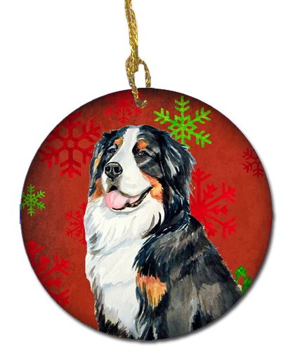 Caroline's Treasures LH9334-CO1 Bernese Mountain Dog Red Snowflake Holiday Christmas Ceramic Ornament, Multicolor