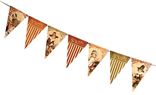 Studio : Bethany Lowe Designs Publisher : Bethany Lowe Designs Binding : Health and Beauty Product Description This lovely pennant garland is a nice addition to any Thanksgiving celebration. It features a collection of pennant flags with vintage inspired images alternating with striped designs. The look is great for a dining room where friends and family are gathered around for a special meal together. Made by Bethany Lowe Designs, this pennant garland measures about 60" long and the flags are about 13" tall. 0