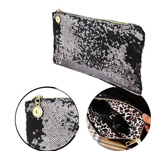 - Sequins Handbag Clutch:Zipper closure design allows convenient to open it,also can protect something from falling out of bag. Inside with one zip pocket,can storage something fine or inportant. High quality leopard print lining,full of fashion and sexy girls feeling .Make you more charming .