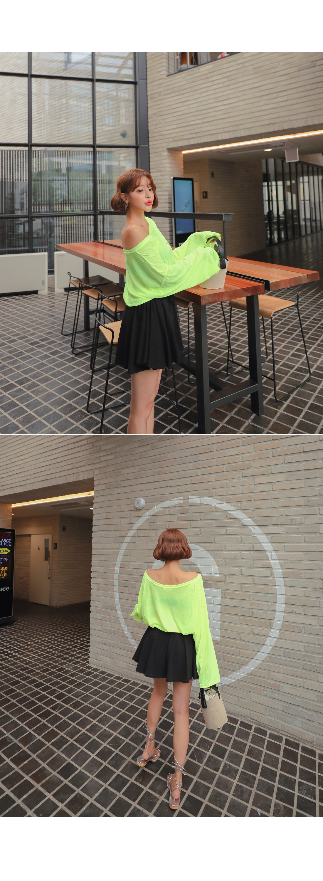 낮게 드롭된 숄더라인에 루즈한 핏감으로