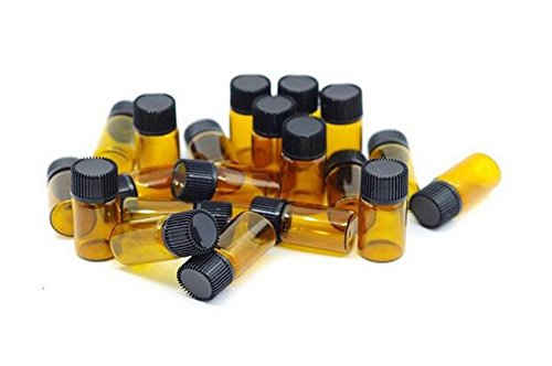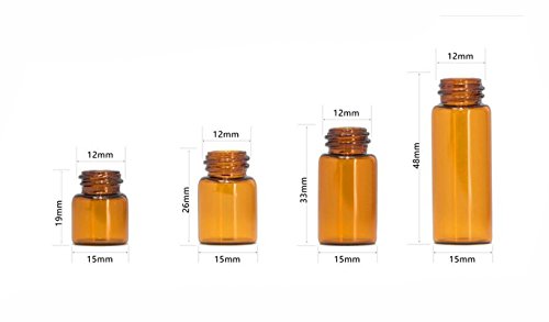 12PCS 1ml/2ml/3ml/5ml Empty Amber Glass Essential Oil Bottle Jar Vial with Orifice Reducer and Cap Cosmetic Makeup Sample Container Bottle Pot (2ml)