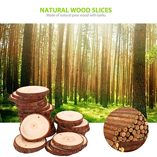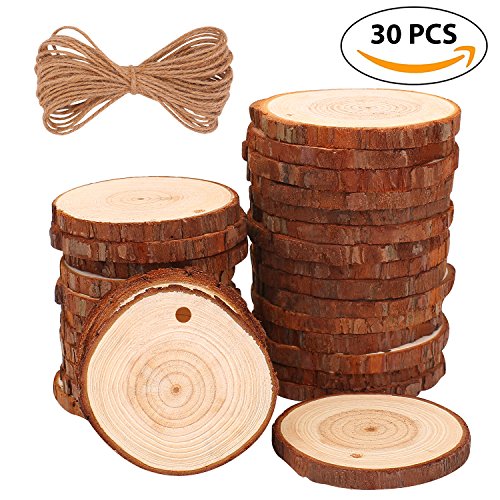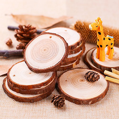 Natural Wood Slices 30 Pcs 2.4"-2.8" Craft Wood kit Unfinished Predrilled with Hole Wooden Circles Great for Arts and Crafts Christmas Ornaments DIY Crafts