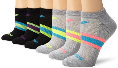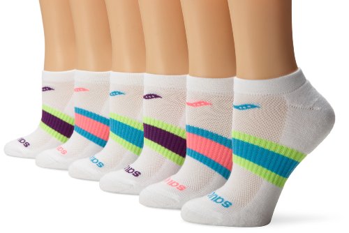 Saucony Women's Performance Arch Stripe No Show socks is a perfect combination of comfort and support. Great for the toughest training sessions. Its flat toe seam, arch support, airmesh venting, and moisture management features will ensure lasting comfort.