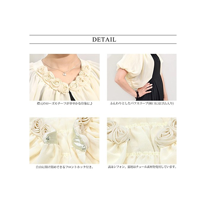 원본상품명: (コウエイストア)koeistore ボレロ 半袖 ロズモチフ パティ 結婚式 フォマル 羽織 レディス Y2011