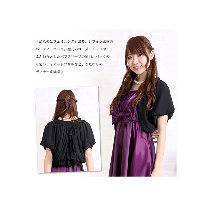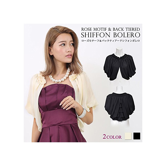 로즈 모티브&백 티어드 시폰 볼레로 상품 인데 페미닌 아주 어느(있는),시폰 소재의 파티 볼레로!파티나 결혼식에서 품위 있고품이 있는 여성에게 반하게 하고 주는 일착입니다♪