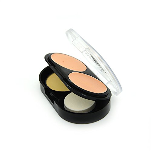 Feature : A portable kit included two versatile concealer and a press powder / Elegant case with 2 layers included a mirror and a puff / Great for daily makeup and travel use / size:8.5cmx5cmx1.5cm / NET:creamy concealer 0.12oz x 2,press powder 0.12 oz