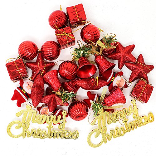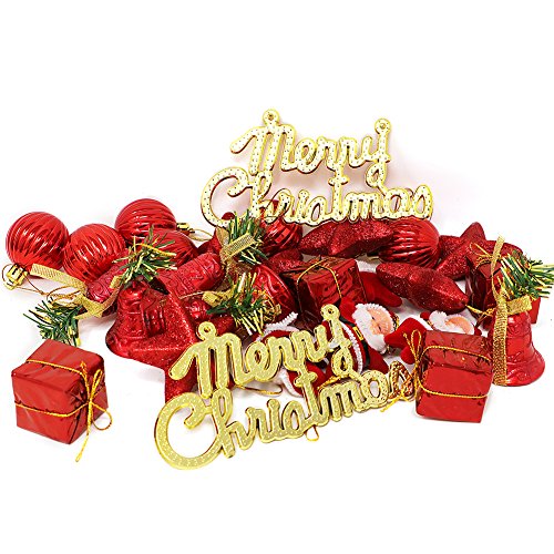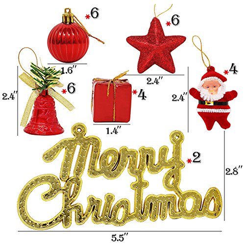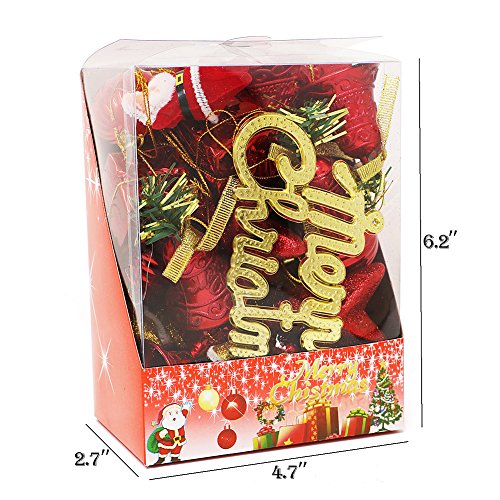 Onshine Christmas Ornaments Set Shatterproof Tree Decorative Baubles Pendants with Reusable Hand-held Gift Package(Red)