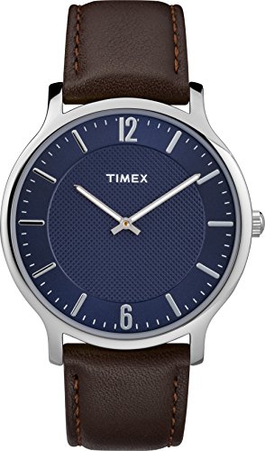 Brand, Seller, or Collection Name:Timex Model number:TW2R49900 Part Number:TW2R49900 Model Year:2018 Item Shape:Round Dial window material type:Mineral Display Type:Analog Clasp:Buckle Case material:Brass Case diameter:40 millimeters Case Thickness:7 millimeters Band Material:leather Band length:Unisex Band width:20 millimeters Band Color:Brown Dial color:Black Calendar:Date Special features:N/A Item weight:4 Ounces Movement:Analog quartz Water resistant depth:30 Meters