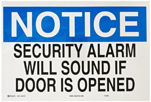 - Title : Brady 84737 Self Sticking Polyester Admittance Sign, 10" X 14", Legend "Security Alarm Will Sound If Door Is Opened"
