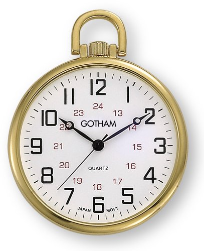 -. Title : Gotham Men's Gold-Tone Ultra Thin Railroad Open Face Quartz Pocket Watch # GWC15026G