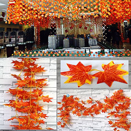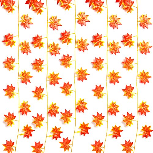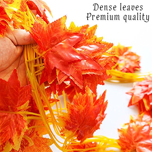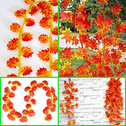 Artificial Maple Leaves,Kyson 12pcs 7.87ft Autumn Ivy Vine Garland with 24pcs Ribbons for Thanksgiving Christmas Wedding Party Garden Wall Decoration