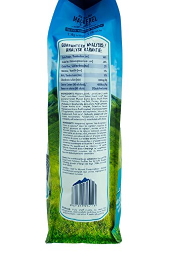 原材料:【保証成分値(含有量)】 代謝エネルギー480kcal/100gたんぱく質43.0%以上脂質25.0%以上粗繊維2.0%以下水分14.0%以下灰分12.0%以下コンドロイチン硫酸1300mg/kg以上, 生肉・内臓・魚介類…96%(マッカロー(サバ)、ラム生肉、ラムハート生肉、ラムトライプ生肉、ラムレバー生肉、ラムラング生肉、ニュージーランド緑イ貝、ラムキドニー生肉、ラムボーン)レシチン、イヌリン(チコリ由来)、乾燥海草ミネラル類(リン酸二カリウム、硫酸マグネシウム、亜鉛アミノ酸複合体、銅アミノ酸複合体、鉄アミノ酸複合体、マンガンアミノ酸複合体、セレン酵母)海塩、パセリ酸化防止剤(クエン酸、天然ミックストコフェロール/ビタミンE)ビタミン類(E、チアミン硝酸塩、D3、葉酸) ※この商品には、遺伝子組み換え原材料は使用していません。