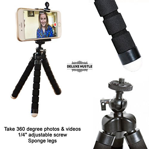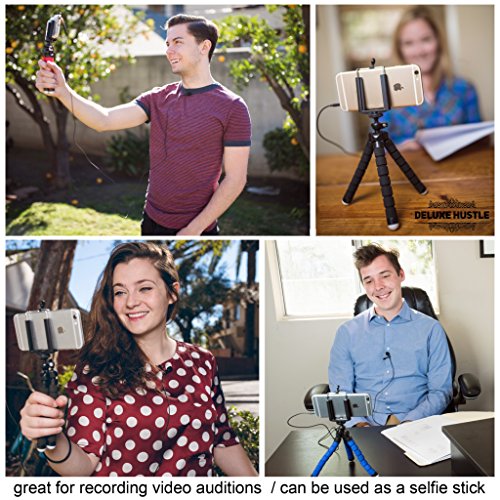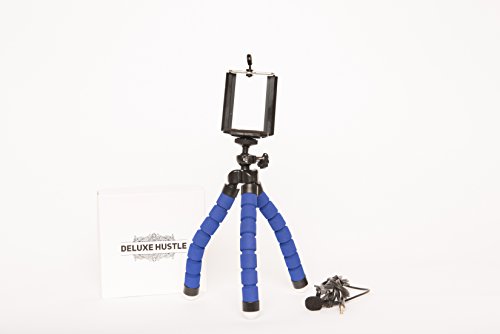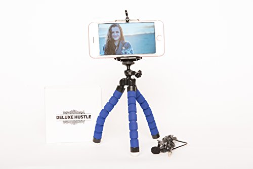 Deluxe Hustle Mini Flexible Tripod w/Phone Mount – With Sponge Legs – Can Hold Any Smartphone – Usable as a Selfie Stick - Includes a Lavalier Lapel Mic (Blue)