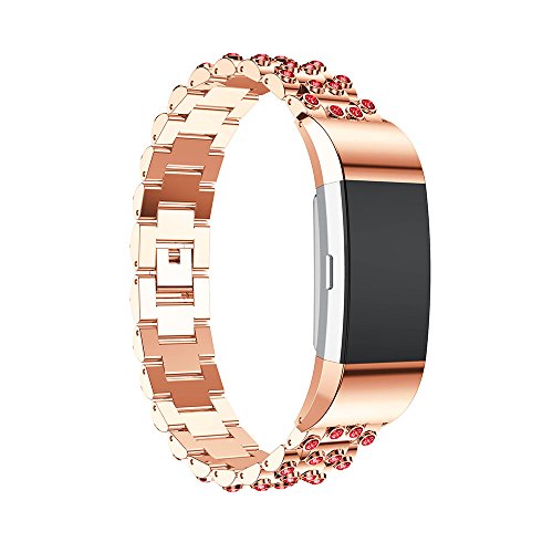 Fitbit Charge 2 Band, Leefrei Metal Replacement Strap with Rhinestone for Fitbit Charge 2