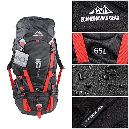 65l Backpack - Multi-day Pack for Hiking, Backpacking with Rain Cover
