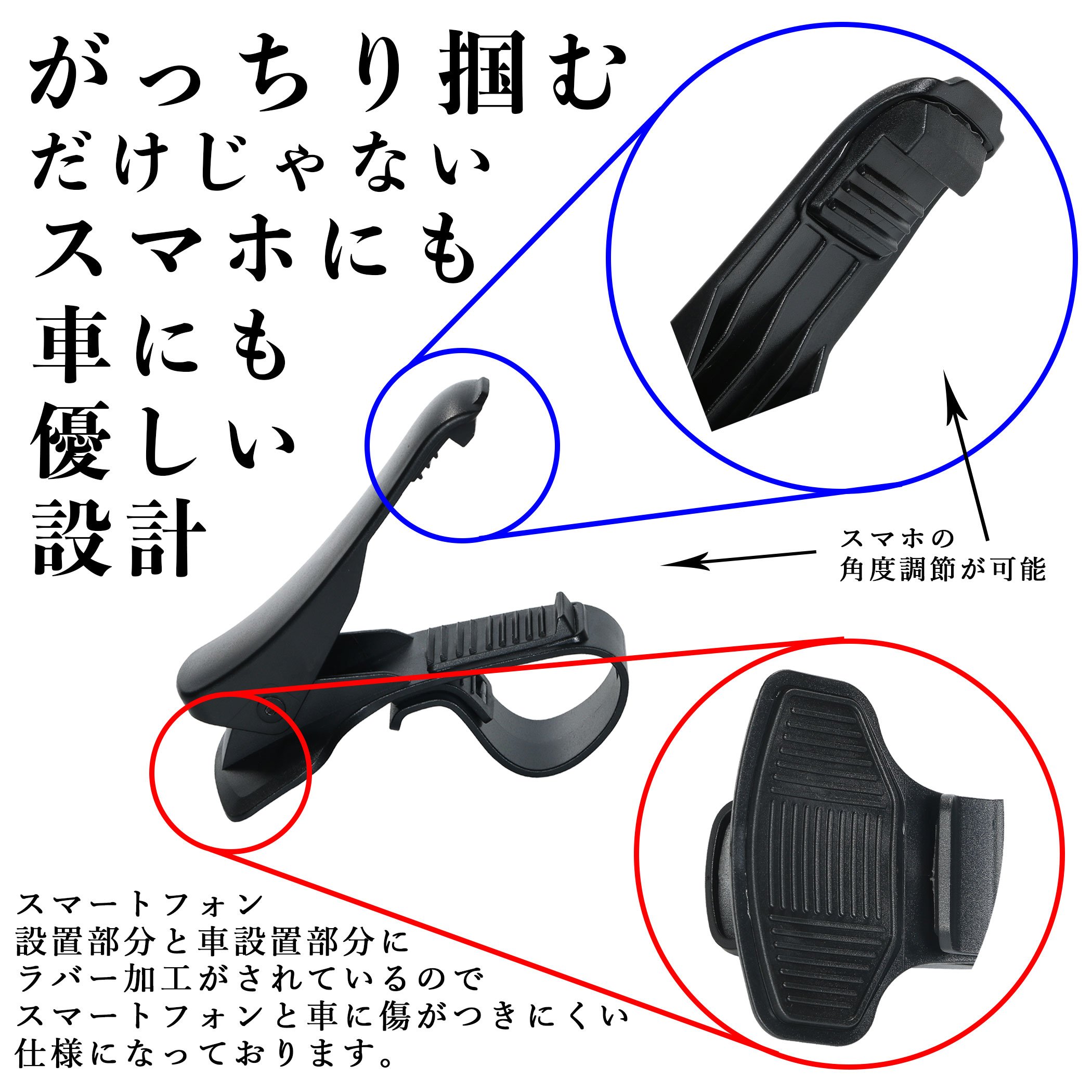 Rubber processing is done on the part where the smartphone is installed and the part where the car is installed, and anti-slip function and ingenuity that is difficult to scratch are done.