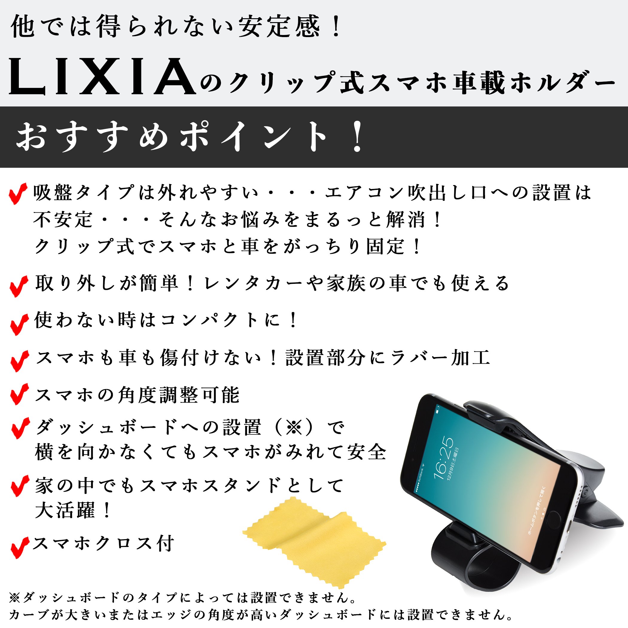 LIXIA clip-type smartphone in-vehicle holder Recommended point!