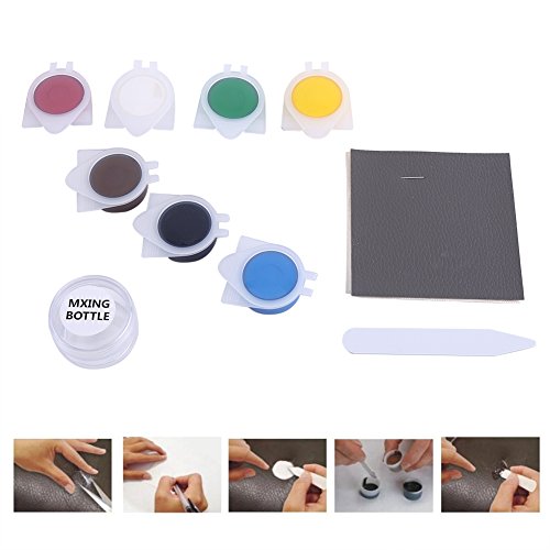 -. Feature : Easily touch-up any leather or vinyl surface / Fast drying, non-toxic, water based solution with no smell / Quickly repairs rips, cuts, tears, burns and holes / Instantly bonds and turns into durable liquid leather, looks like new again / Create and match any color using 7 base intermixable leather compound colors