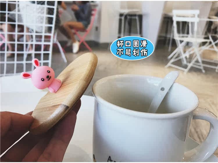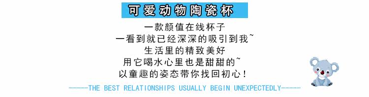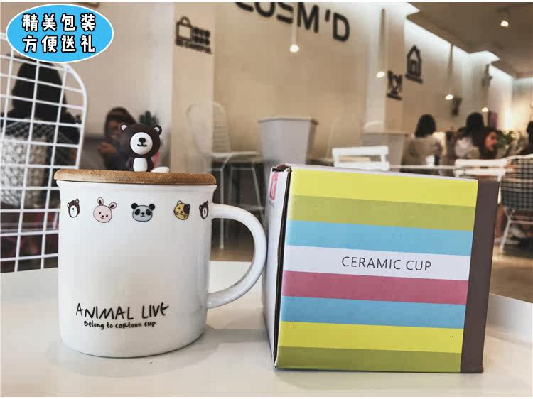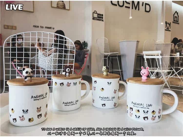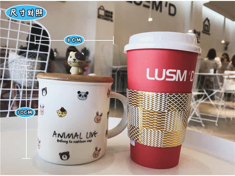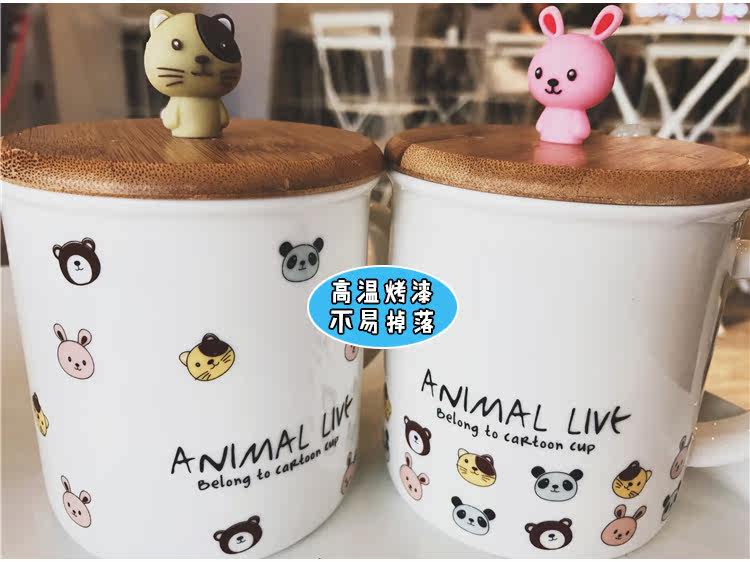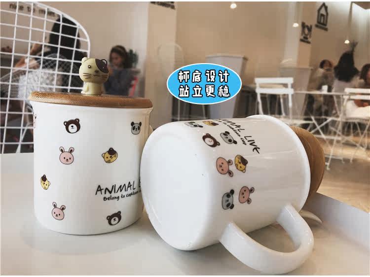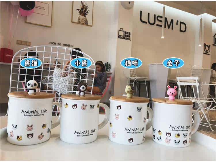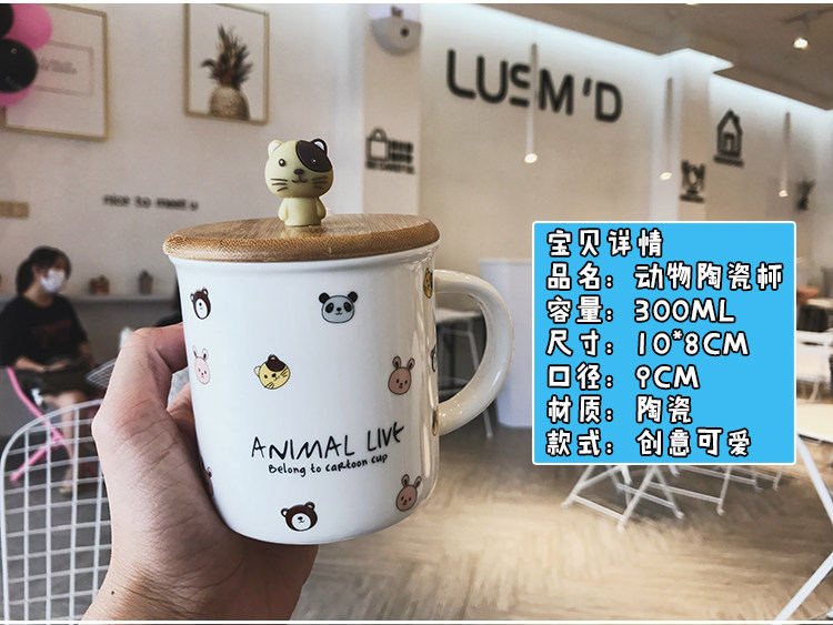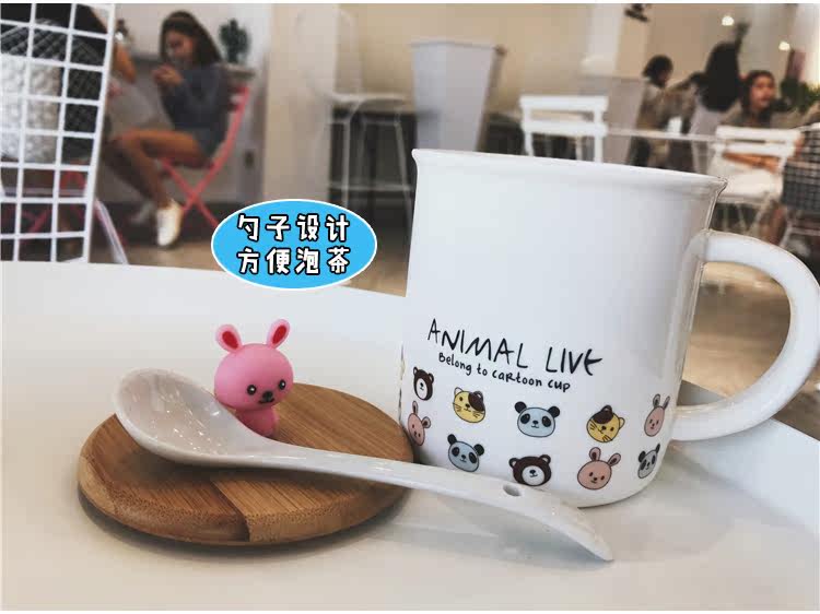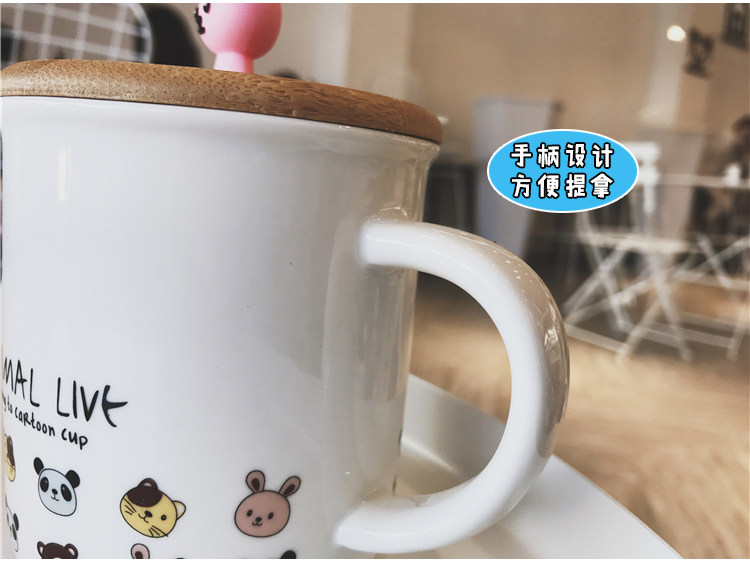 可爱卡通软萌小动物手柄陶瓷马克水杯学生儿童带勺带盖可爱水杯子