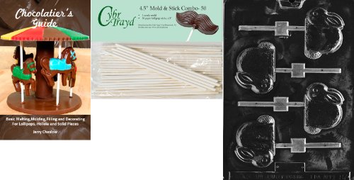 Cybrtrayd 'Crouching Bunny Lolly' Easter Chocolate Candy Mold with 50 4.5-Inch Lollipop Sticks and Chocolatier's Guide
