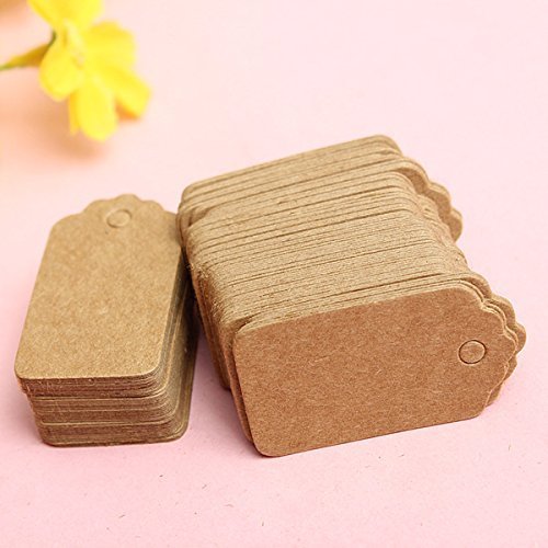 100 Pcs Mini Size 5X3cm Scallop Kraft Paper Label Tag Card Lolly Bag Bonbonniere Favor Gift Tags Twines Product Price Label, Great as Party Wedding...