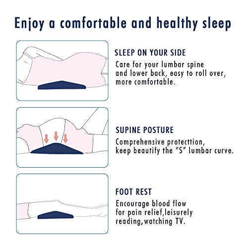 Multifunctional & Versatile- This pillow not only can protect the waist, but also can be placed in the calf or below the knee, providing comfort, can be used as a knee support pillow, lumbar support pillow,or leg spacer, also suitable for back sleeper, side sleeper, for the lower back pain people and pregnant woman.
