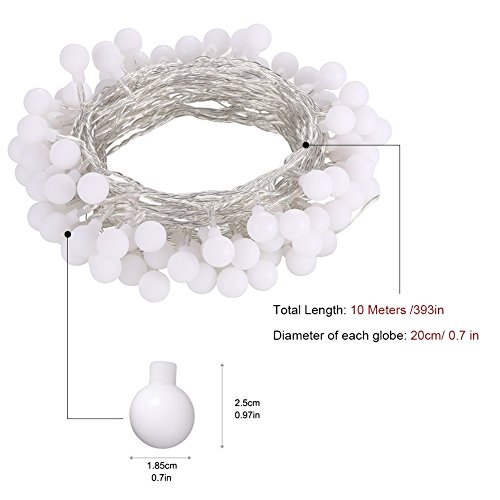 - ☀ADORABLE DESIGN : There are 100 mini LED bulbs in delicate frosted white ball shape.The diameter of each globe ball is 0.7 inch and there is 4 inch long between each ball.