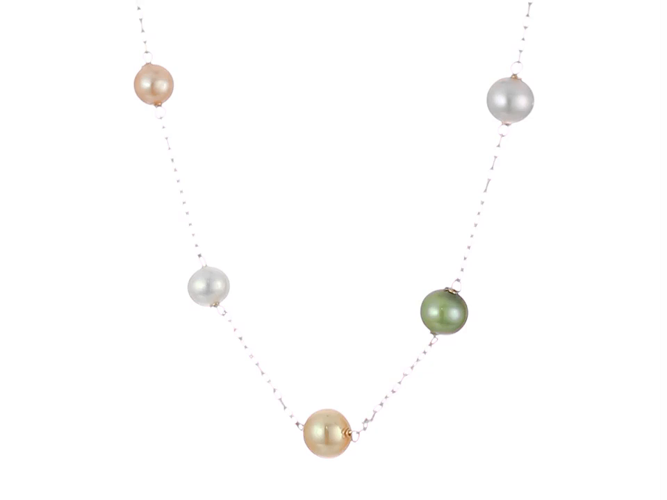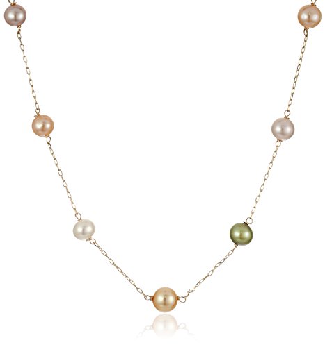 Girls' Freshwater Cultured Multicolored Pastel Pearl Tin Cup 14k Yellow Gold Necklace Pearl Strands, 14"
