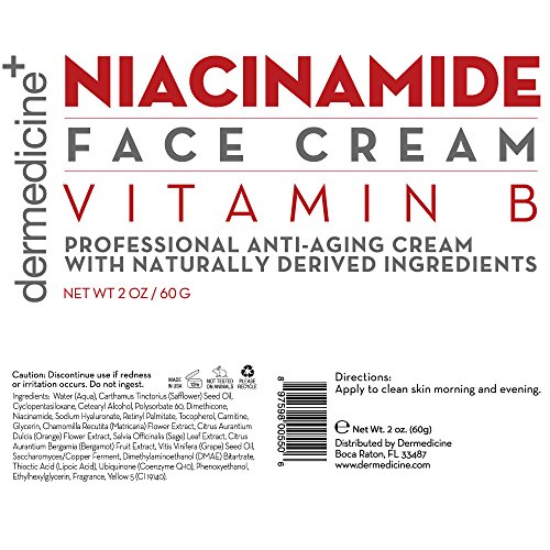 - HELPS REDUCE FINE LINES & WRINKLES: Our powerful, thick & rich moisturizing Vitamin B cream combines Niacinamide w/ Retinol & natures key ingredients Hyaluronic Acid, Grapeseed Extract, Bergamot Extract, CoEnzyme Q10 & DMAE to help smooth & nourish overall complexion. Regular use may improve the appearance of skin color and tone, helping to reduce the appearance of fine lines, crows feet, lip, forehead & smile lines for plumper, softer, firmer, smoother, brighter skin.