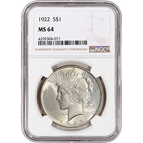 1922 US Peace Silver Dollar Large Label $1 MS64 NGC