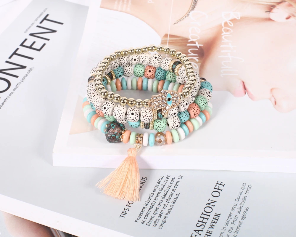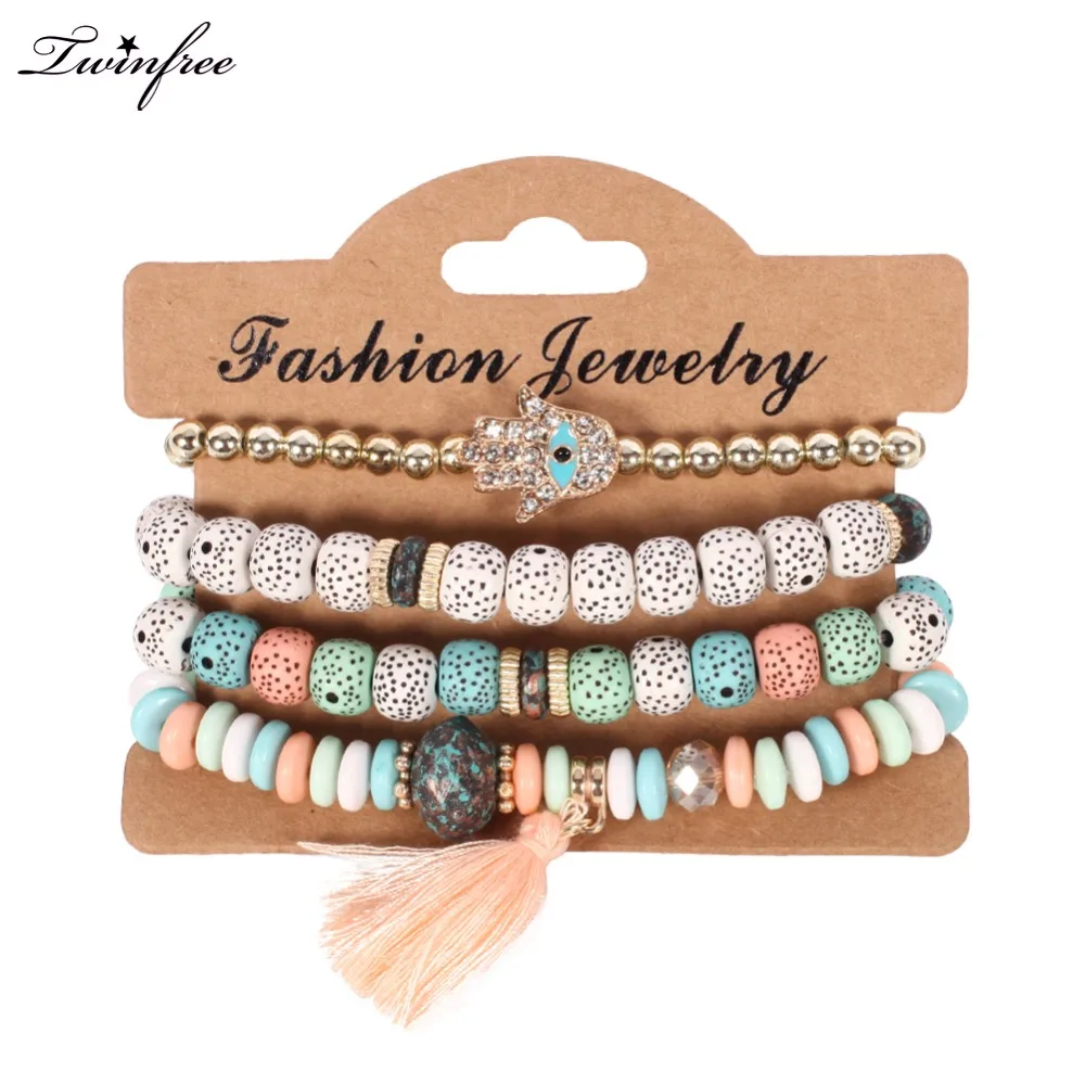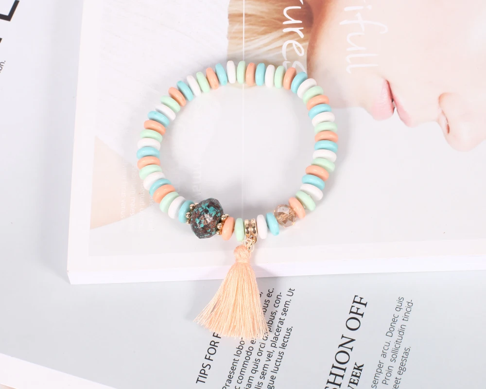 Name:Twinfree Jewelry Small Stone Beads Multi-Wrap Tassels Long Bracelets
