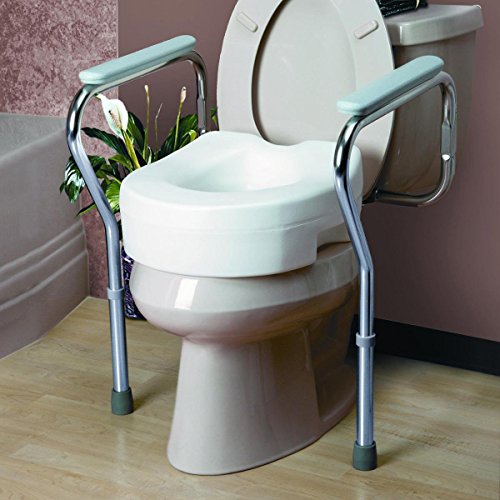 Studio : Invacare Publisher : Invacare Product Description The Invacare Toilet Saftey Frame is an ideal bathroom aid for use over a standard toilet or with a raised toilet seat. With?adjustable?arms and legs for secure hand and balance support, this toilet safety frame features a 1 in. anodized, noncorrosive aluminum frame as well as an easy-to-attach aluminum bracket. The safety frame's arms fold back for cleaning and remove easily for transfers, making the Invacare Toilet Safety Frame an ideal bathroom aid to assist in your daily living routine. Product includes just the frame, and the seat raiser is? sold separately.Aluminum bracket is easy to attachArmrests provide secure hand supportArms fold back for cleaning and easy transfers 0