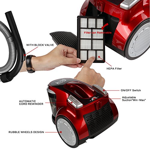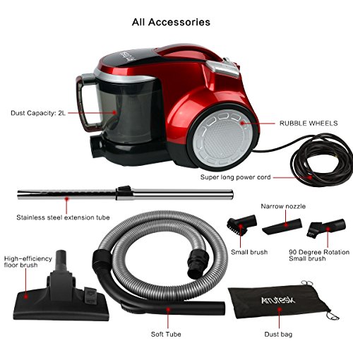 ★[Brand:Arrutesk.Cyclonic System&Strong Suction]---Cyclonic System for long-lasting, Multi-stage filtration system and cuts through any mess with powerful suction, Easy and convenient for operation, Special low noise design,The suction can reach 15-17KPA.