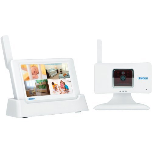The Uniden Guardian Lullaboo G403 is an advanced wireless digital baby monitor with 4.3 inch quadview touchscreen monitor and night vision camera. This wireless monitor uses 2.4 GHz digital frequency hopping spread spectrum (FHSS) technology which delivers secure, dependable, and interference-free transmissions. The system allows recording up to 60 hours on the 4GB SD-card, and elect manual, scheduled, or motion detection recording. You can even watch live video remotely via iPhone, or Android phone. The Uniden G403 digital wireless baby monitor supports up to 4 cameras at the same time where images can be shown in several configurations. The system also features night vision technology that provides a clear black and white view within a range of 20 ft. The wireless design makes the system easy to set up and provides up to 500 ft. transmission distance.Feature