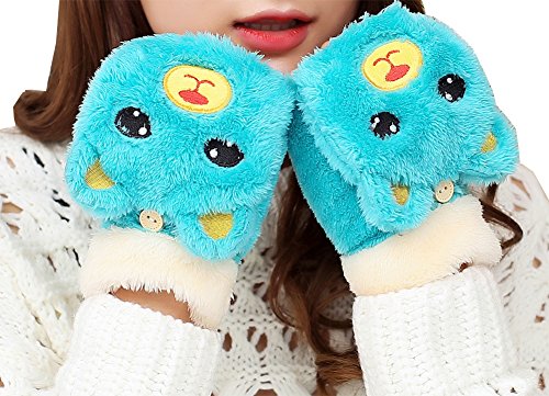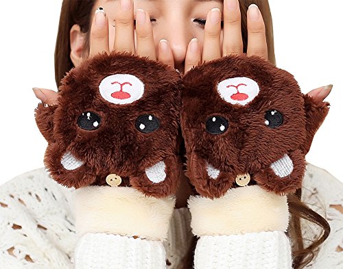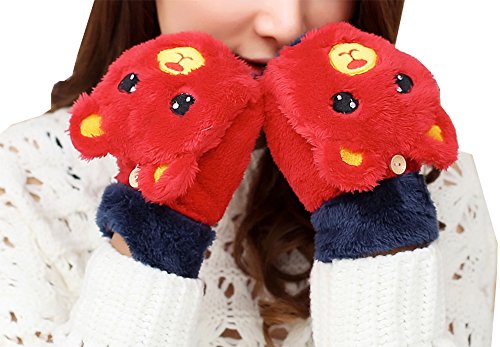 (e-youth)/Accessories/Cold Weather Accessories/DIRECT FROM USA/Girls Cute Bear Fluffy Warm Soft Winter Fingerless Gloves Women Mitten