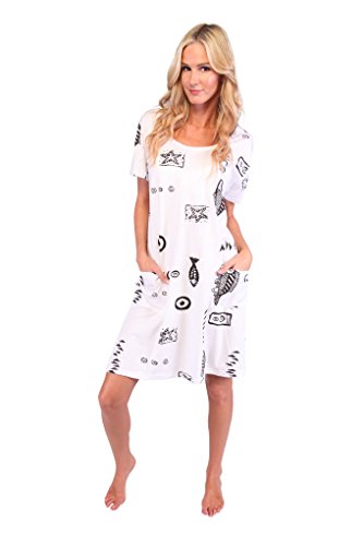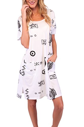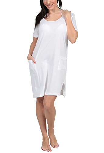 | Ingear Beach Summer Shift Dress Short Cotton Tee Dress Cover up |