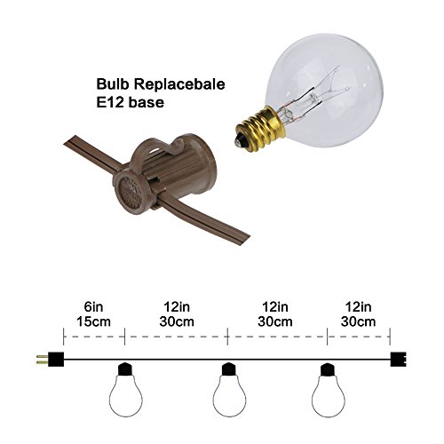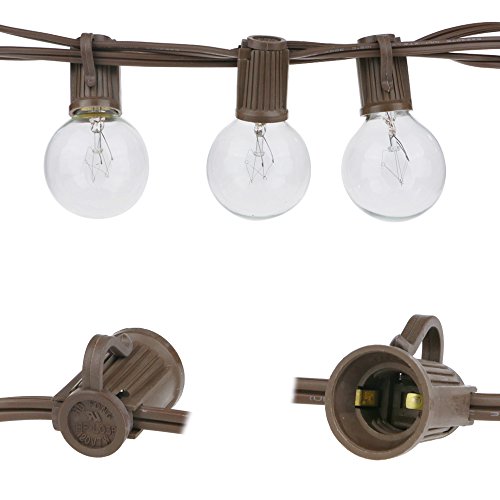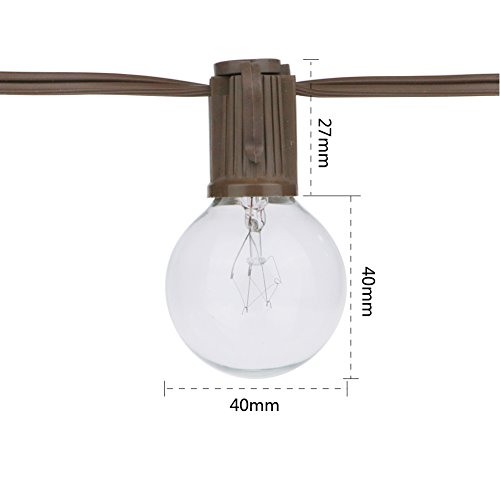 GMY Lighting Imports G40 Globe String Lights 25 Clear Bulbs,Garden,Holiday, Party Indoor or Outdoor Decor Fairy Strip Light Brown Wire