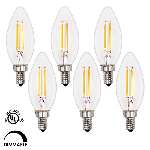 Supmart 4W Filament Led Candelabra Bulb Dimmable 2700K Warm White 350 Lumen UL Listed E12 Led Candles Torpedo Shape 35W Incandescent Bulbs Equivalent CRI 85+ B10 Chandelier Bulb Pack of 6