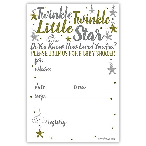 Twinkle Twinkle Little Star Baby Shower Invitations (20 Count) With Envelopes