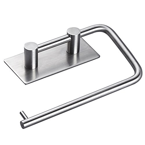 Self Adhesive Toilet Paper Holder Wall Mount for Bathroom, No Drill Tissue Roll Hanger for Kitchen, Paper Towel Hanger Brushed Stainless Steel, Waterproof Rustproof Silver