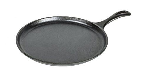 10.5 INCH MOOSE SCENE GRIDDLE. This round cast iron griddle pan is the perfect tool for cooking pancakes, pizza or quesadillas. The slightly raised edges keep oil, batter and other ingredients neatly contained. The Wildlife Series Moose Scene design adds even more heritage to this iconic griddle, making it an ideal piece for collectors