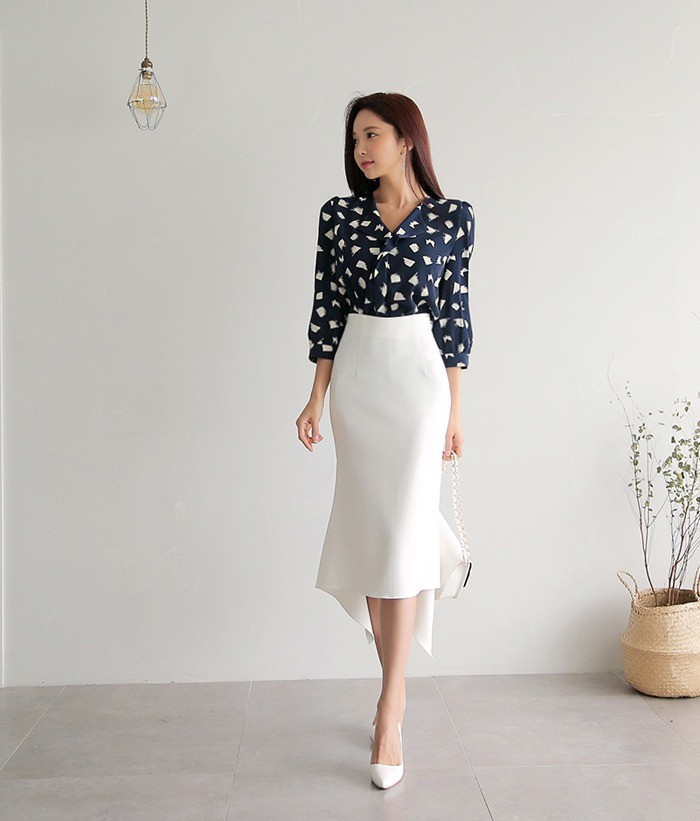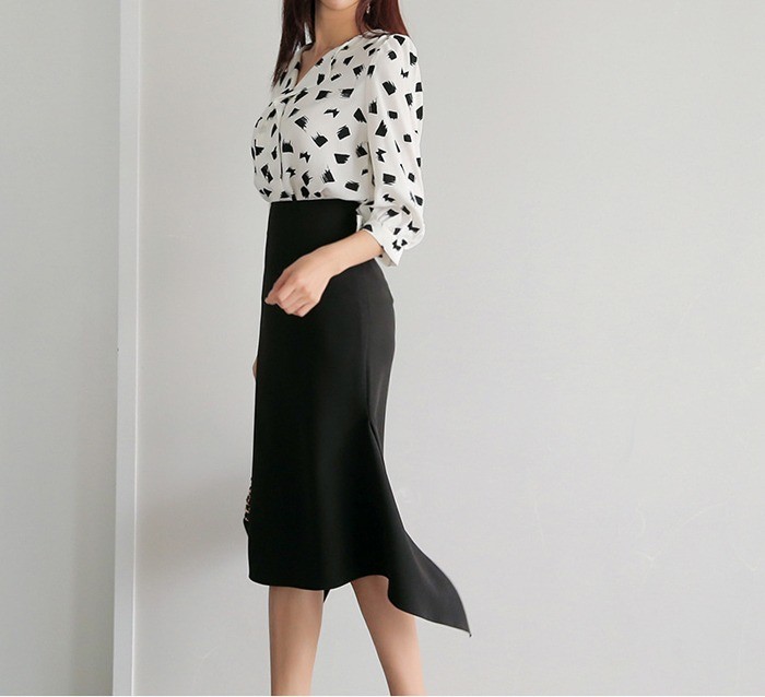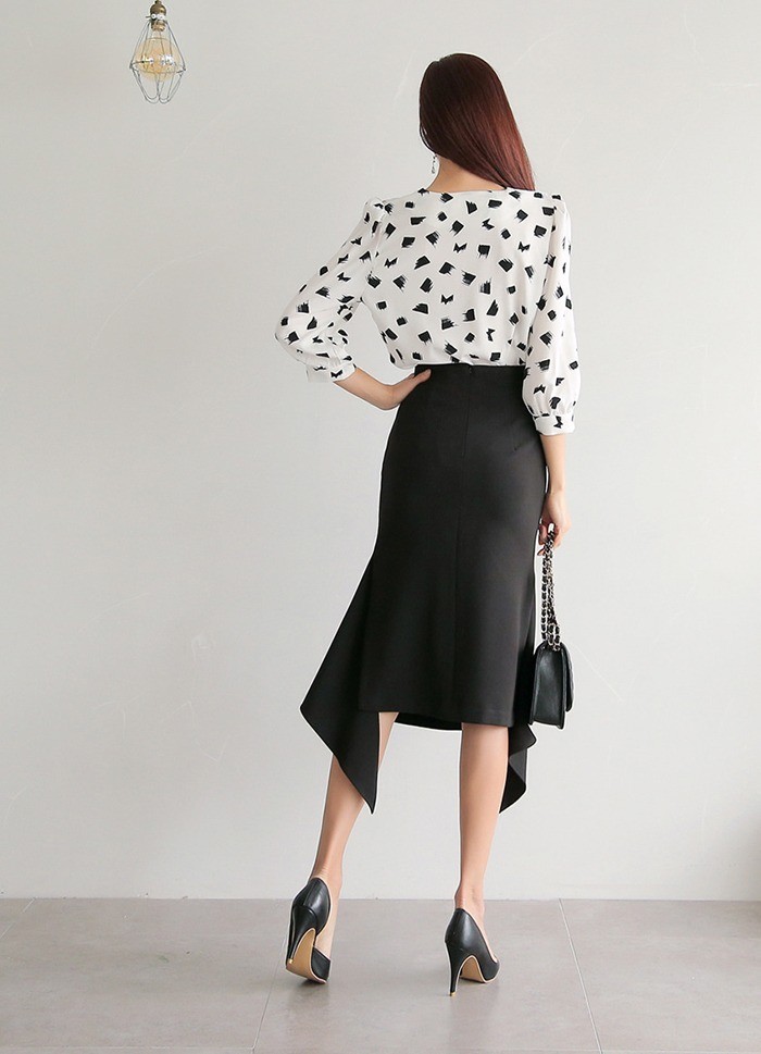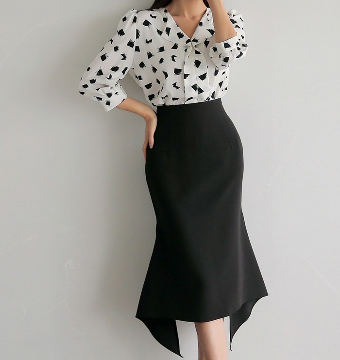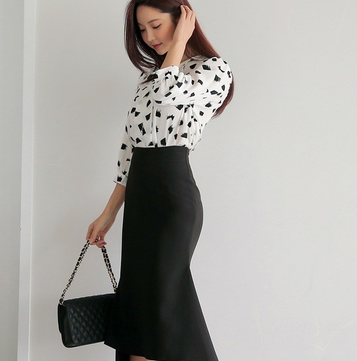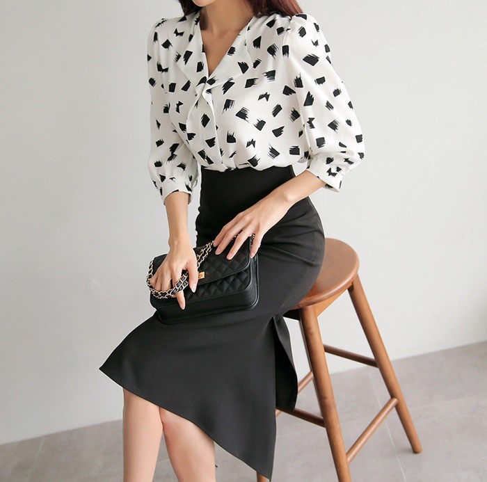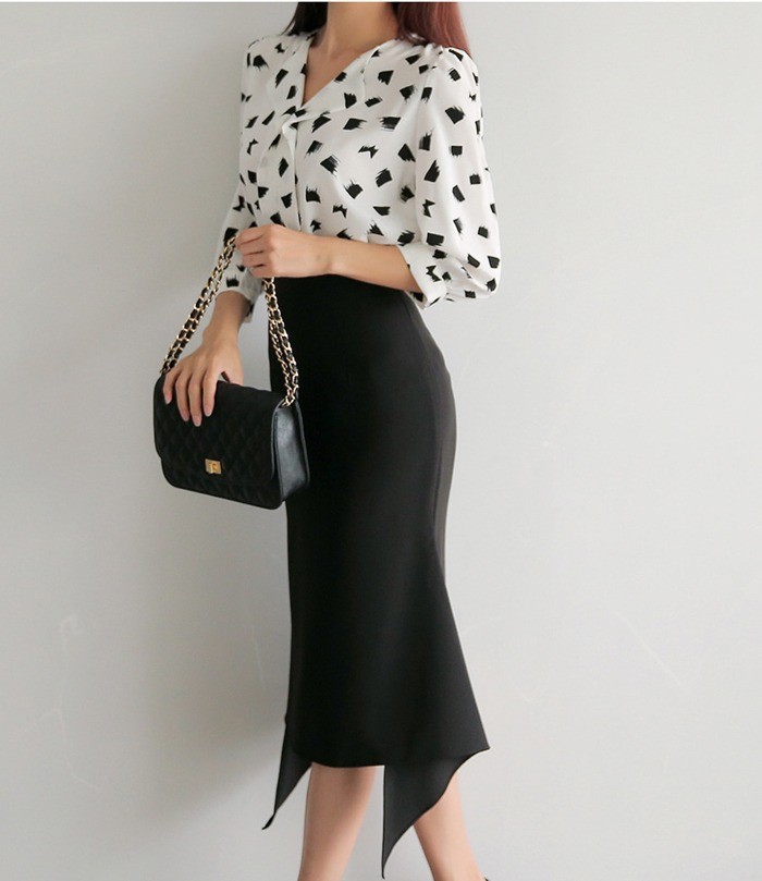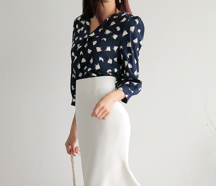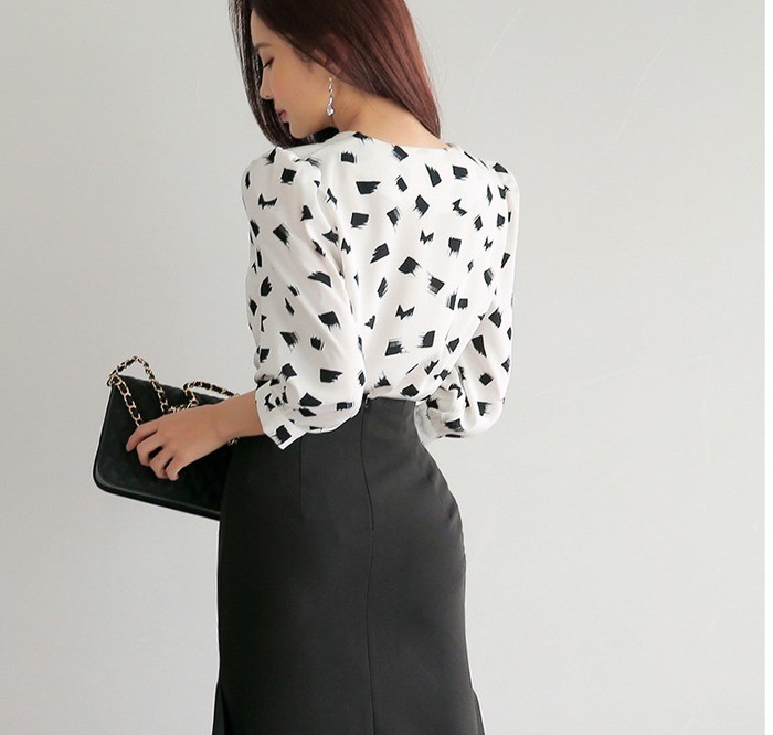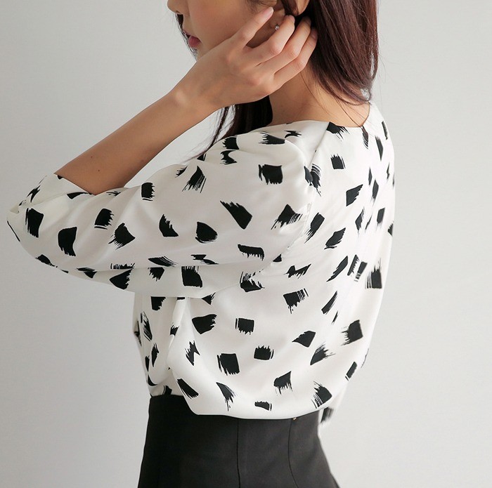 商品名:ブラウス プルオーバー 柄 7分袖 きれいめ 通勤