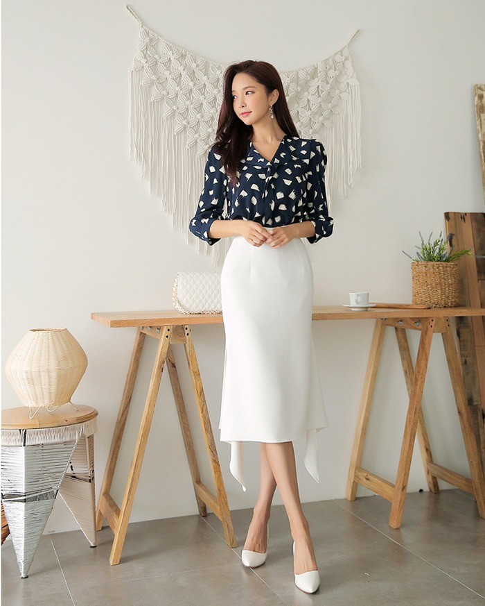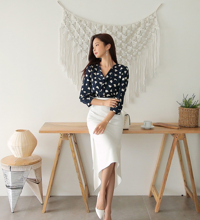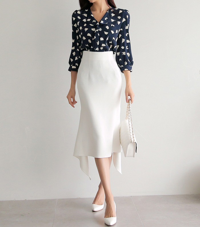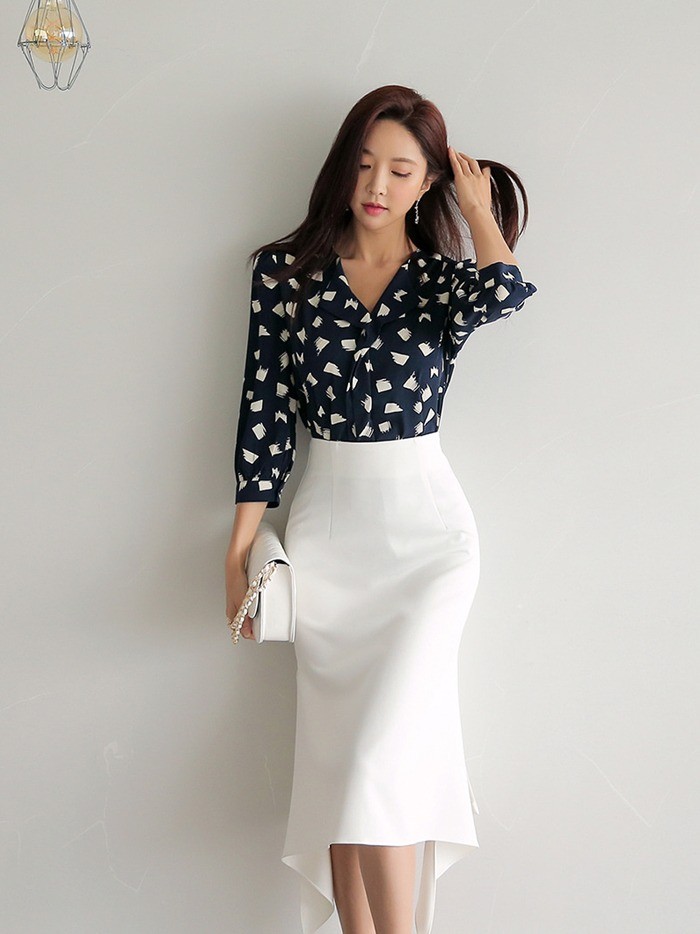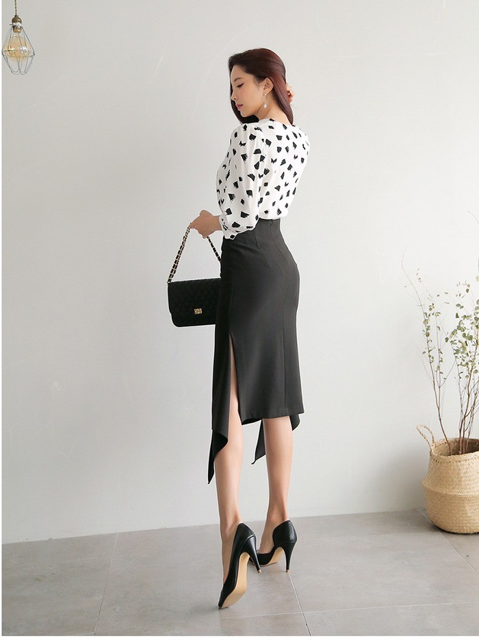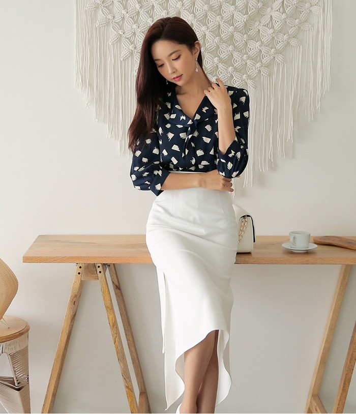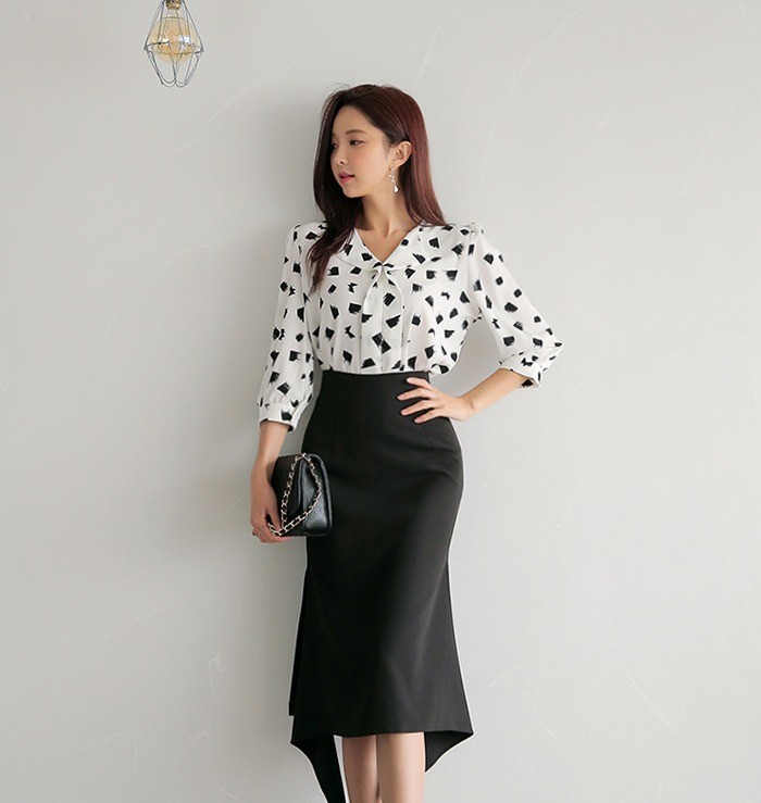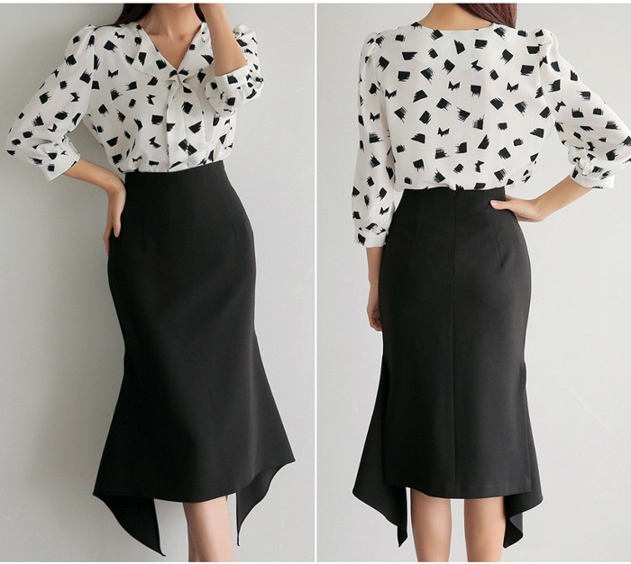 商品名:ブラウス プルオーバー 柄 7分袖 きれいめ 通勤