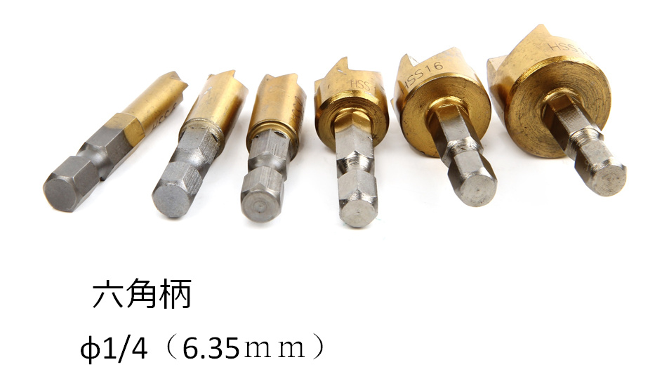 ・内容:面取りカッター×6本(6mm 8mm 9mm 12mm 16mm 19mm×各1本)