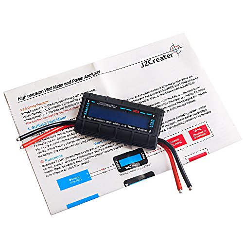 Power Analyzer - JZCreater Watt Meter Power Analyzer, High Precision RC with Digital LCD Screen for voltage (V) current (A) Power (W) Charge(Ah) and Energy (Wh) Measurement 130Amps