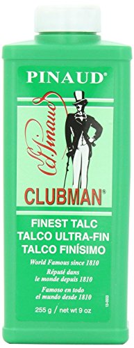 Clubman finest talc - world famous since 1810. Keeps you fresh and dry all day.