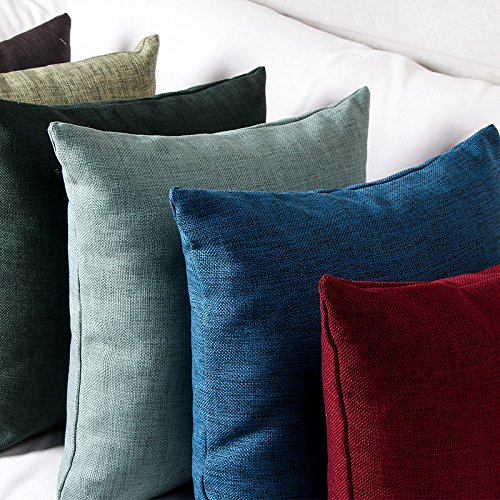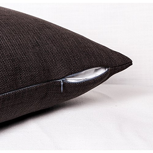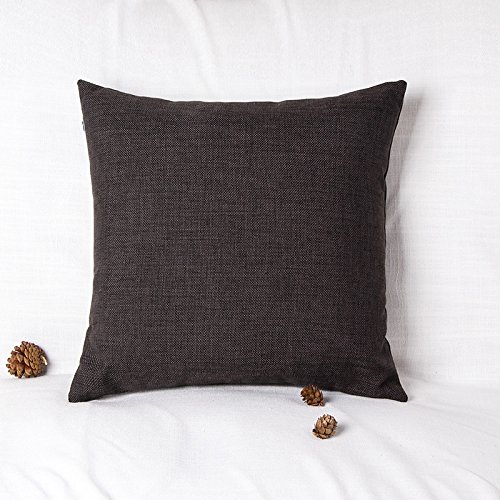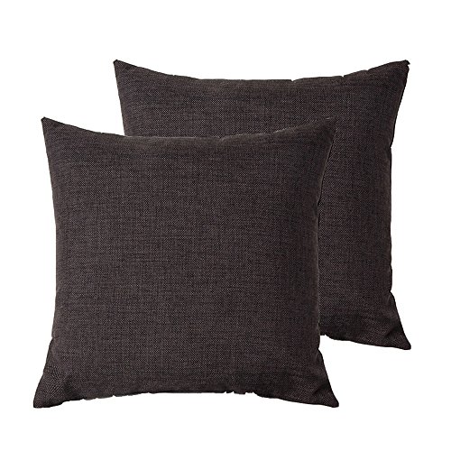 Sigmat Pack of 2 Throw Pillow Covers 18 X 18 Inches, High Class Faux Linen Solid Color (Brownish Black)