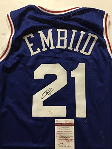 Autographed/Signed Joel Embiid Philadelphia 76ers Sixers Blue Basketball Jersey JSA COA