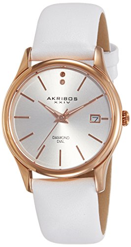 Akribos XXIV Women's AK879WTR Quartz Movement Watch with Silver Dial and White Leather Strap